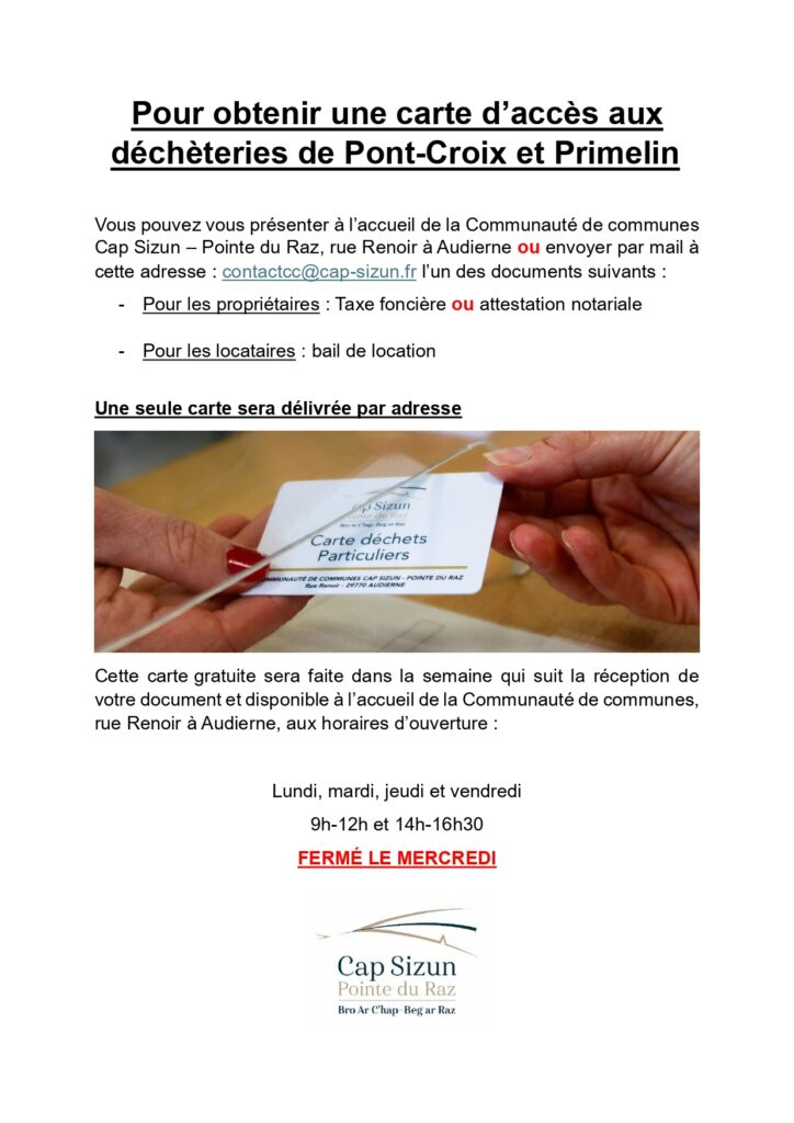 Carte d’accès aux déchèteries de Pont-Croix et Primelin Posted on 12 février 202612 février 2026 by confadmin